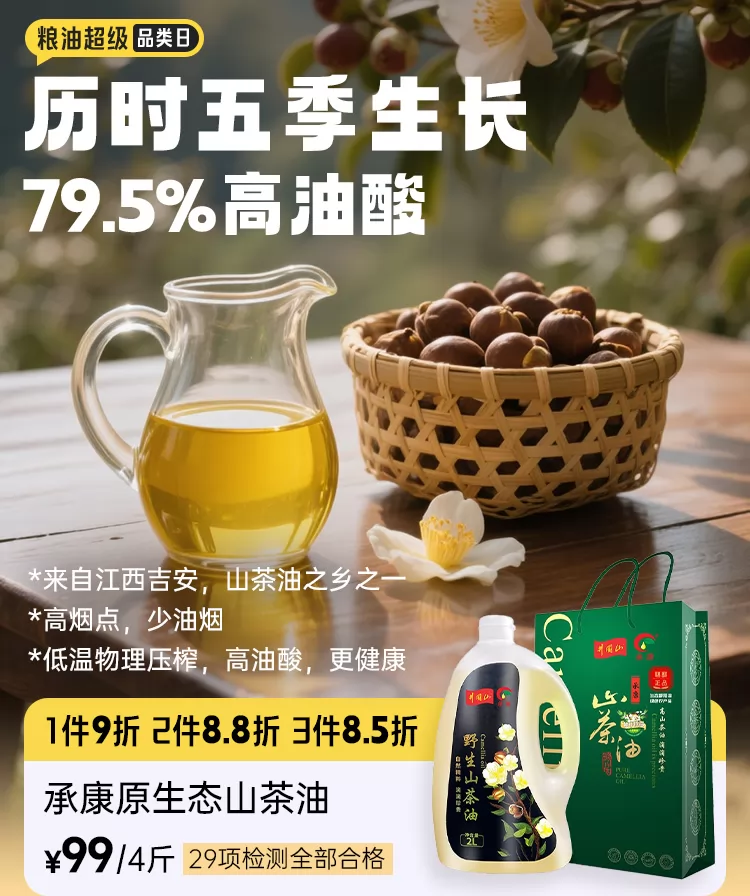 承康原生态山茶油2L礼袋装 含油酸、山茶昔、茶多酚、VE、VD及各种生理活性成份