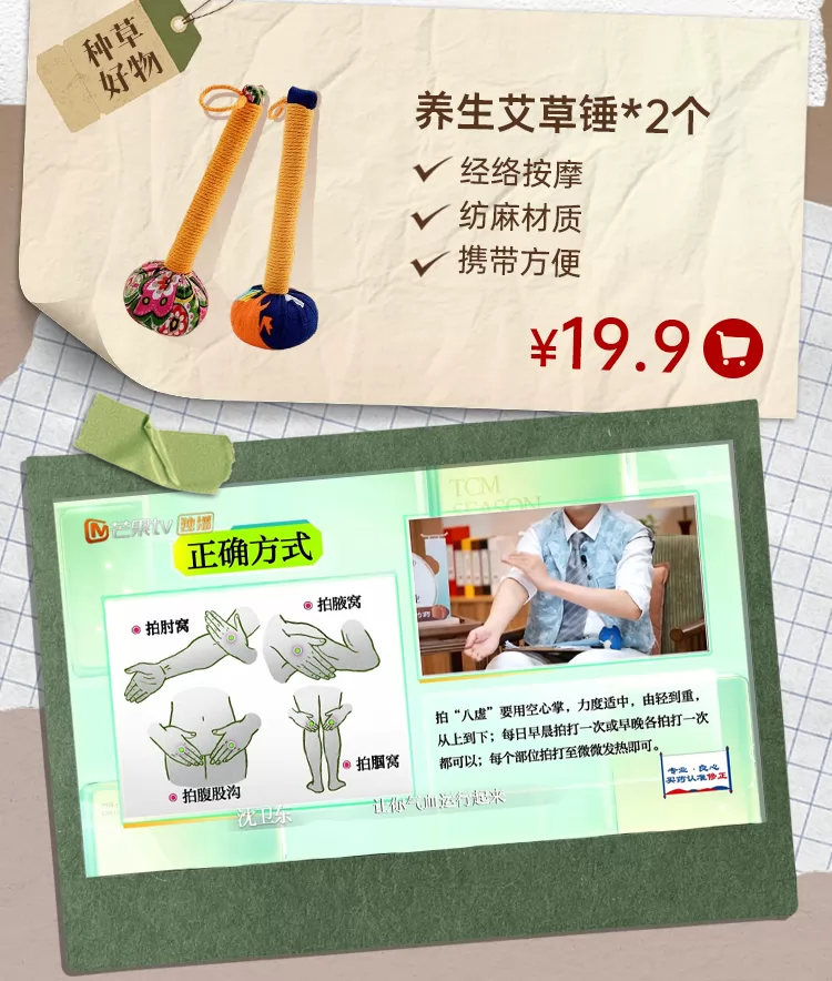 有控生活多功能艾草锤老年人养生艾草敲打锤2个装长款31cm(随机色)