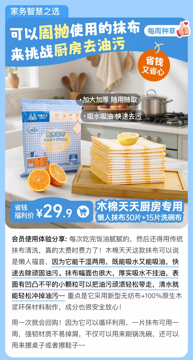 木棉天天厨房专用懒人抹布30片+15片洗碗布