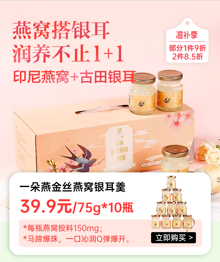 滋时燕窝玫瑰鲜炖桃胶258g*8碗