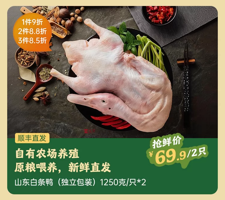 宛味宝山东老鸭子散养老土鸭顺丰包邮2斤/只*2只装