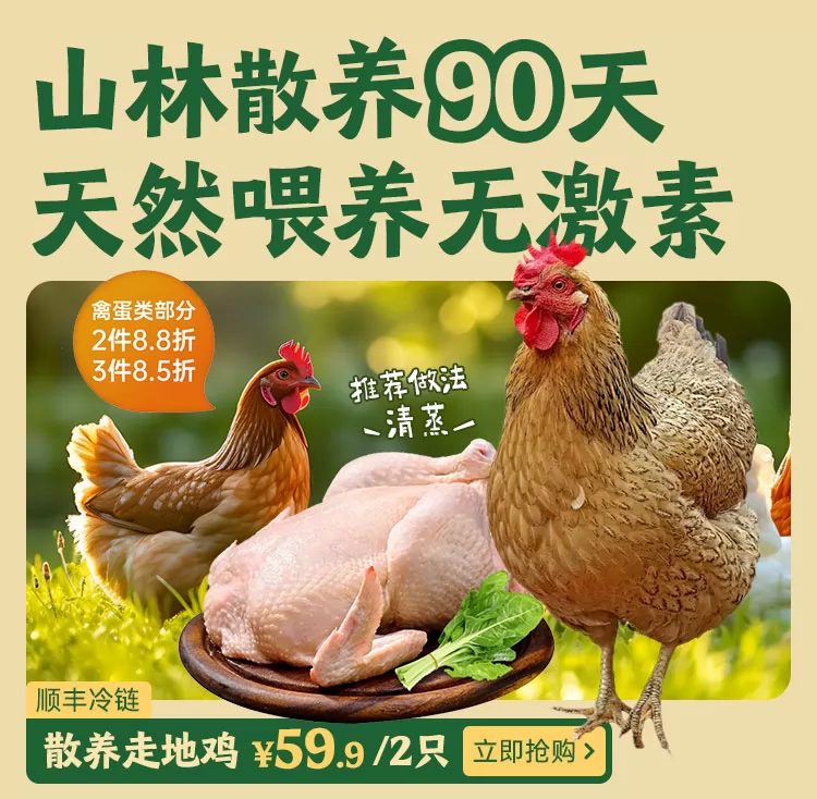 【顺丰/京东】蛋鲜森400天无抗黄油老母鸡2.2斤+徽州童子鸡1.8斤