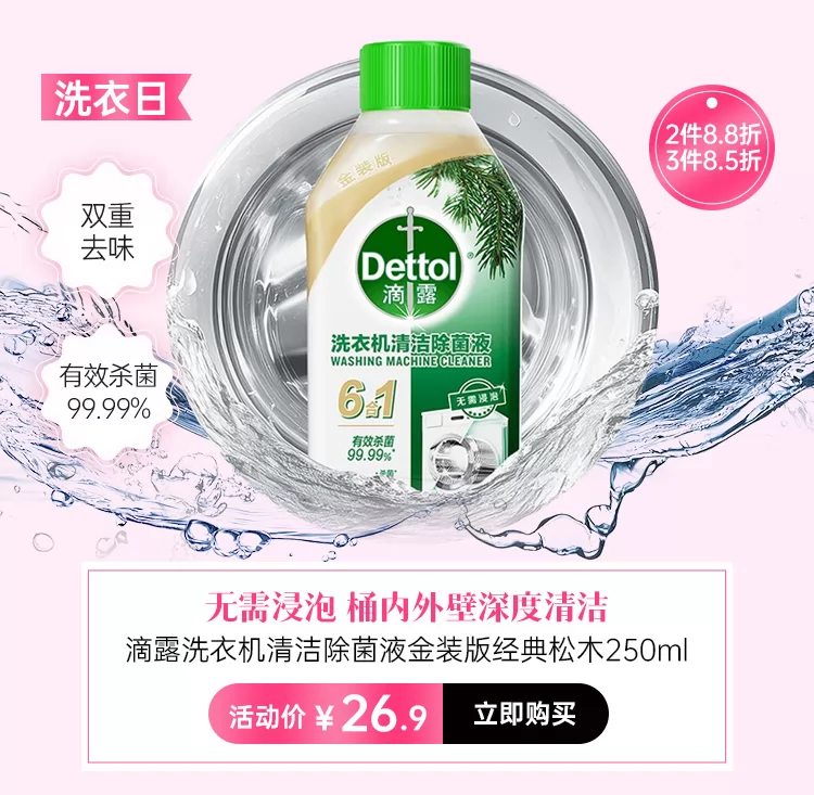 滴露洗衣机清洁除菌液金装版柠檬清新250ml