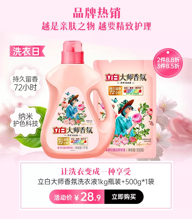 立白大师香氛洗衣液1kg瓶装+500g*1袋