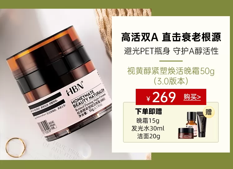 HBN·视黄醇紧塑焕活晚霜50g3.0版赠晚霜15g发光水30ml洁面20g