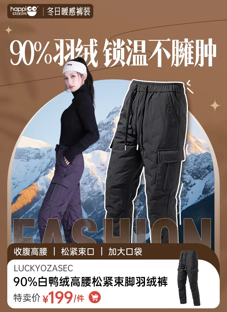 LuckyOzasec女士90白鸭绒高腰松紧腰束脚工装羽绒裤ONE609