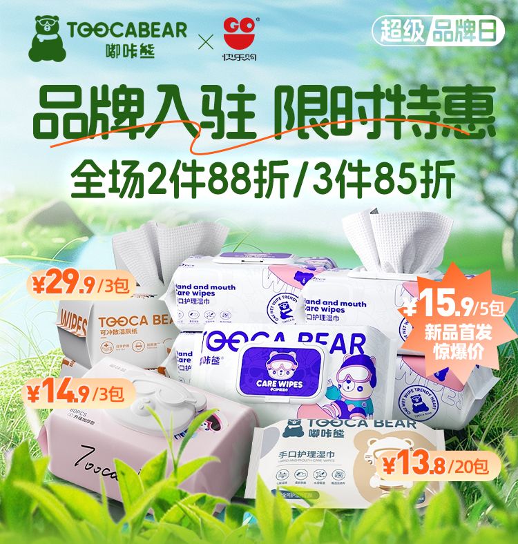 嘟咔熊国风系列手口护理清洁湿巾80抽*5包