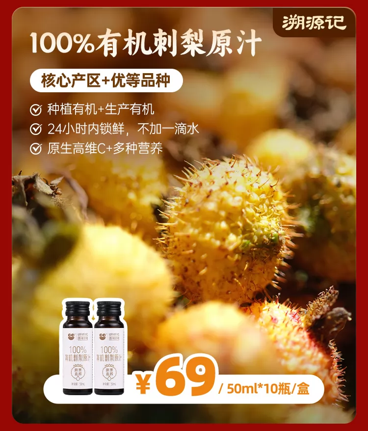 芒果良品溯源记100%有机刺梨原汁50ml*10瓶/盒