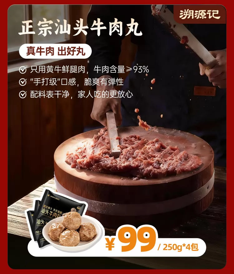 溯源记正宗汕头牛肉丸250g/包*4 牛肉含量≥93%