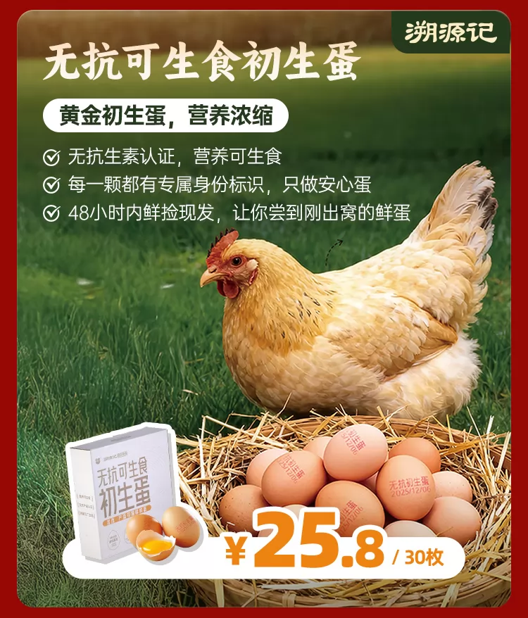 溯源记无抗可生食初生蛋30枚/箱 (顺丰/京东包邮) 净含量1kg 快乐购自营品