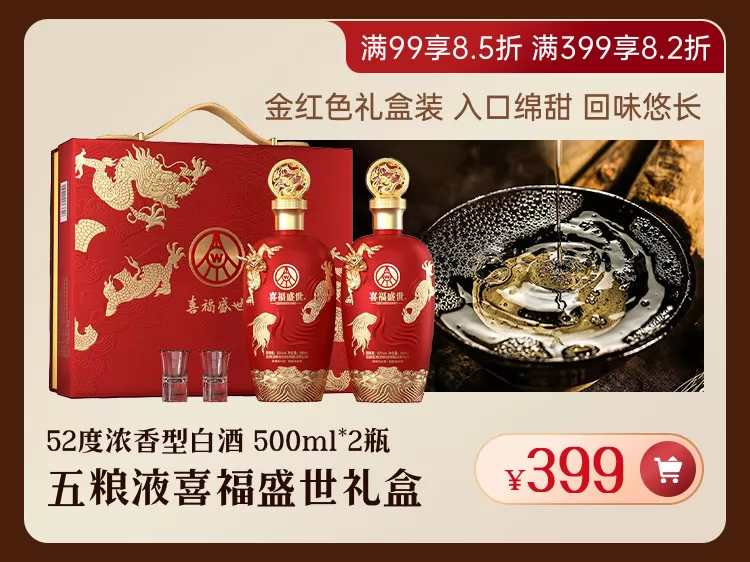 五粮液喜福盛世龙行大运52度浓香型白酒500ml*2瓶