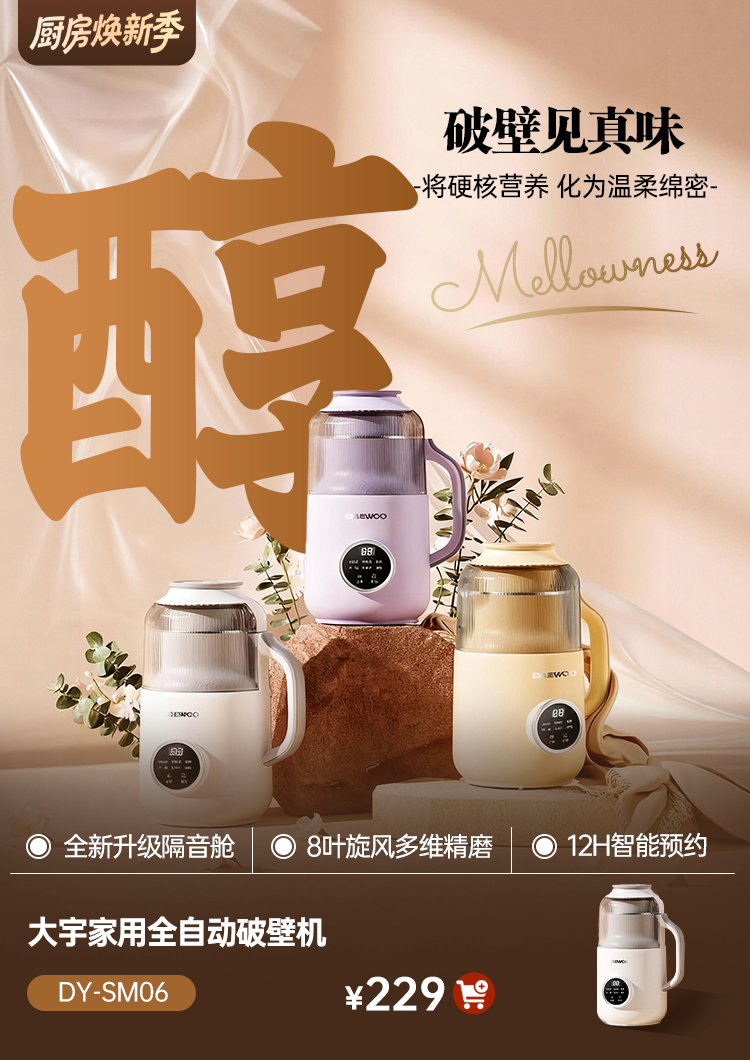 苏泊尔破壁料理机智能预约榨汁机豆浆机辅食机绞肉机果汁机加热搅拌研磨多功能