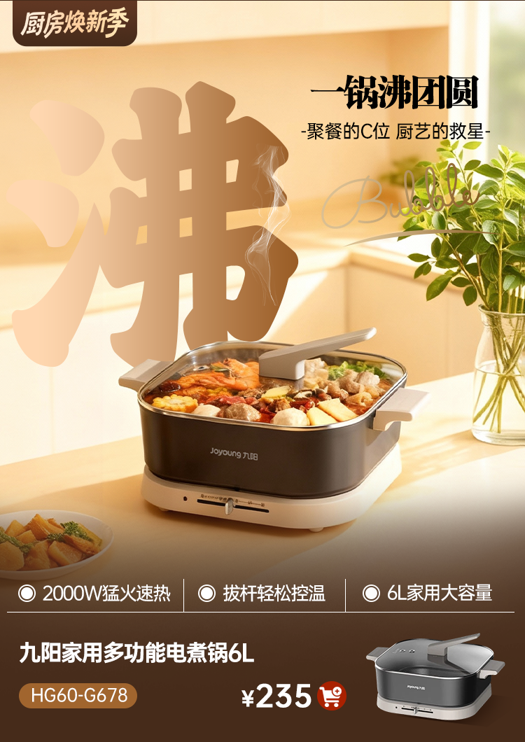 九阳电煮锅宿舍学生煮面锅电火锅蒸煮一体多功能家用小型HG16-G169新升级