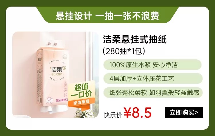 心相印挂式抽纸巾大包悬挂式抽纸四层厚实感压花挂墙式卫生纸320抽*1提装