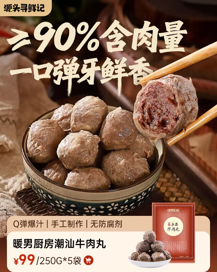 喜辉潮汕牛肉丸&牛筋丸全新升级七星款(120g*4袋装)