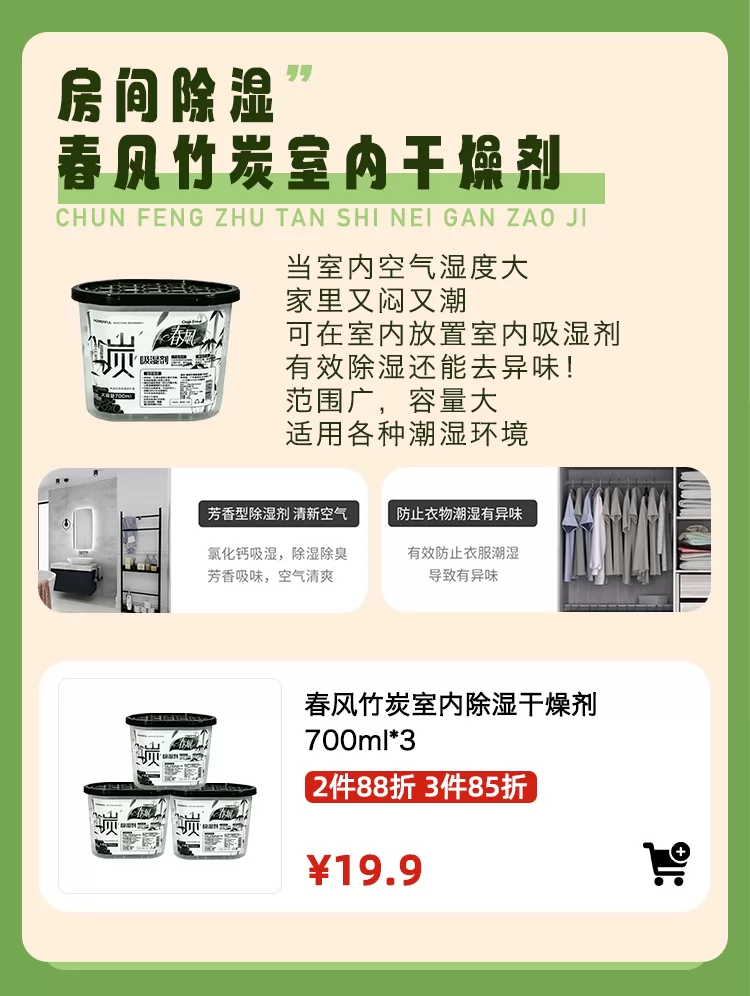 春风竹炭室内除湿干燥剂700ml*3