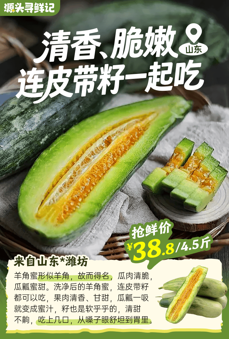 边走边淘山东羊角蜜甜瓜4.5斤4-6个