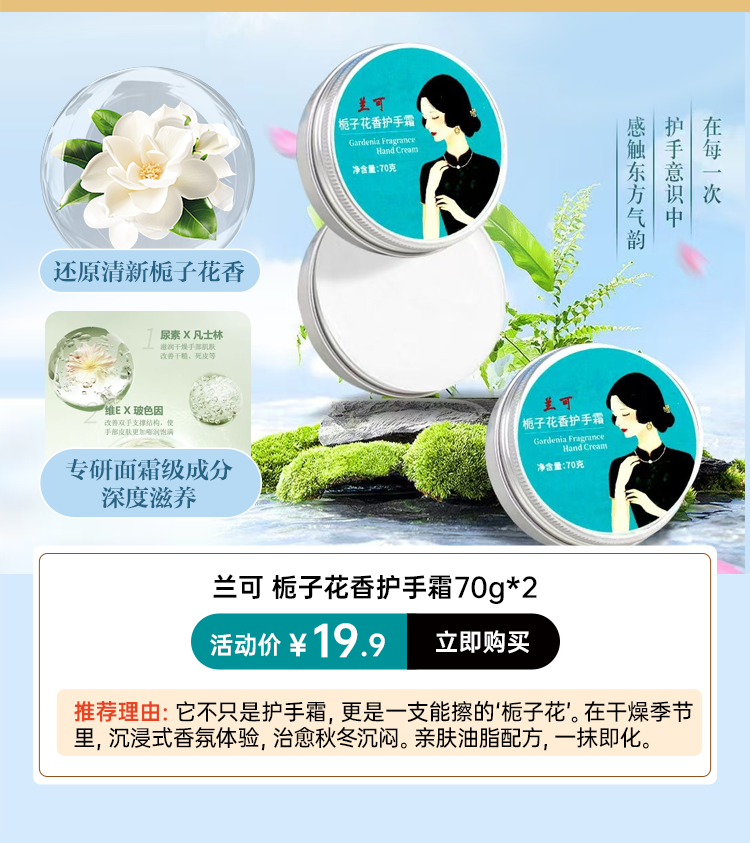 roopy润培 馥奇香氛植物精粹护手霜75ml*2支