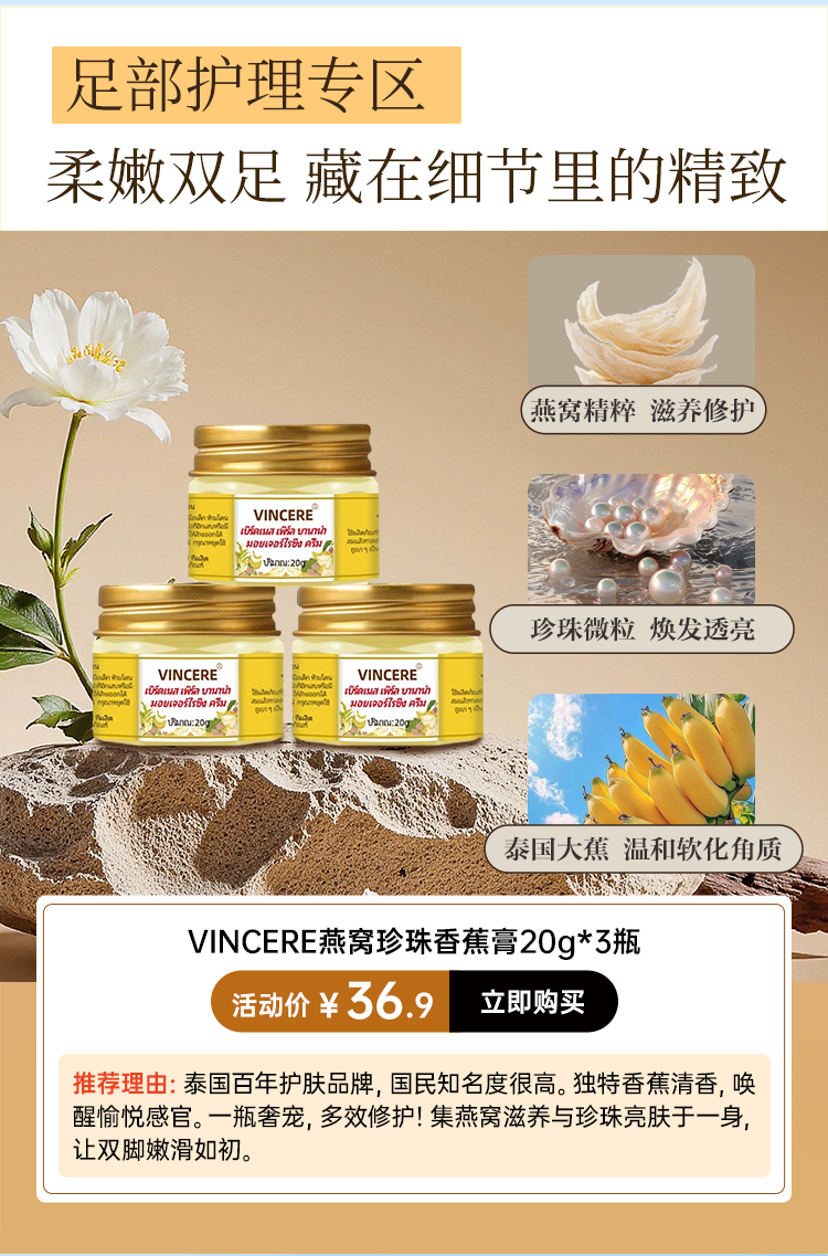 泰国原装进口KAVAGOOD脚气护足霜15g*3瓶