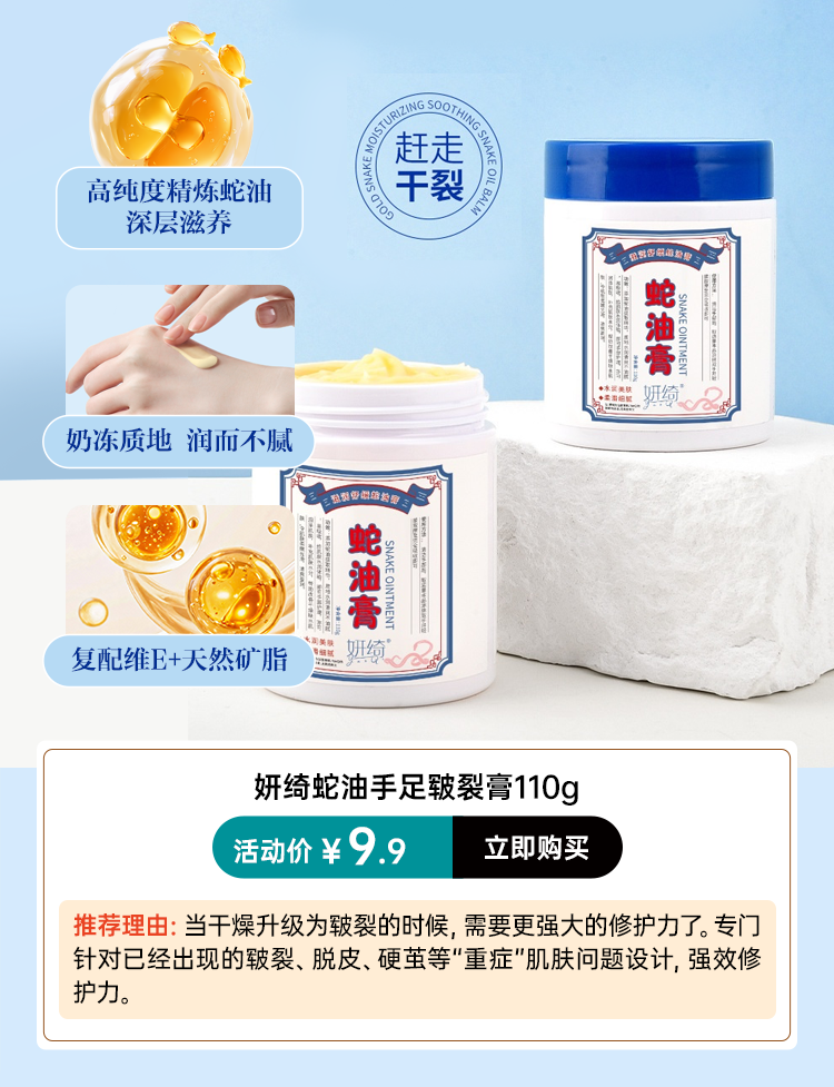 妍绮 蛇油膏秋冬季手足皲裂膏护足霜110g