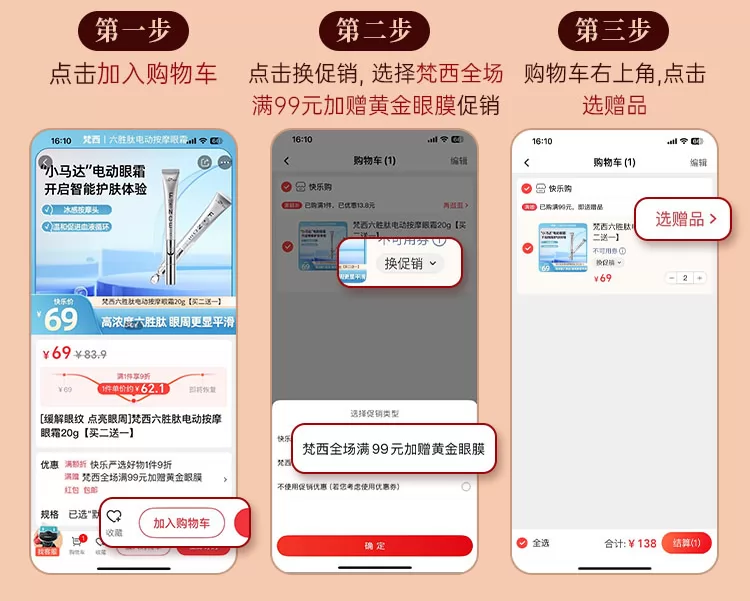 梵西六胜肽电动按摩眼霜20g【买二送一】