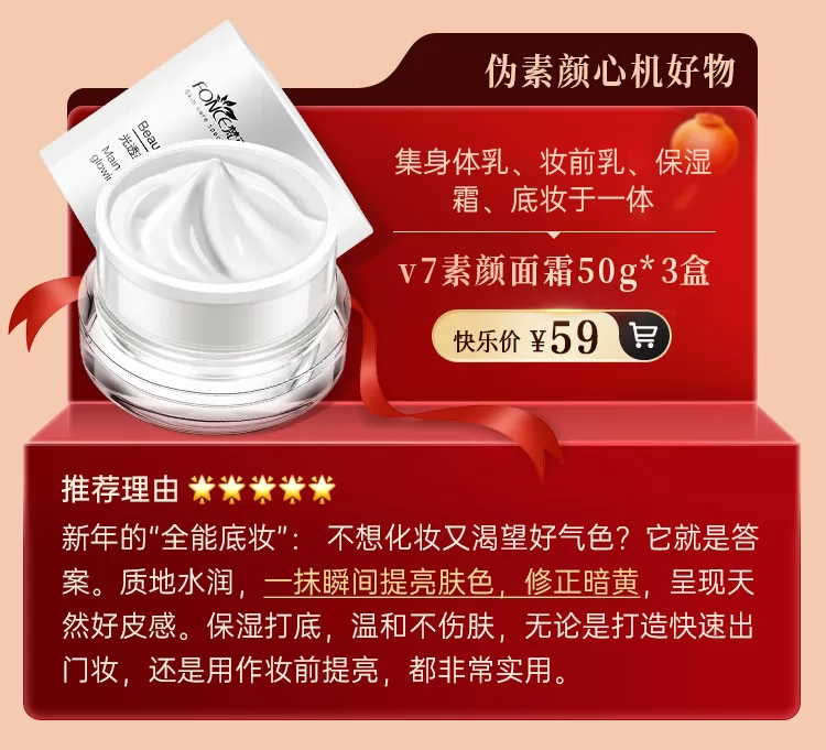 梵西FONCE 素颜霜v7面霜补水保湿遮瑕隔离50g*3盒