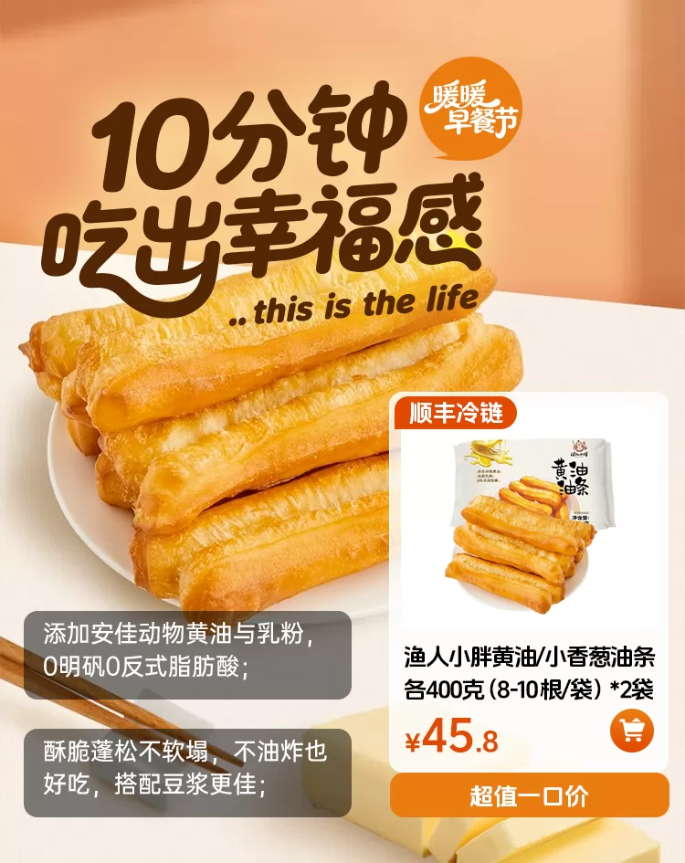 渔人小胖黄油/小香葱油条各一袋400克(8-10根/袋)*2袋