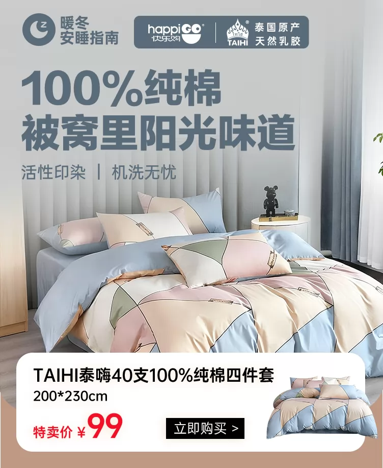 【11.11特卖】TAIHI泰嗨40支100%棉纯棉四件套限量特卖