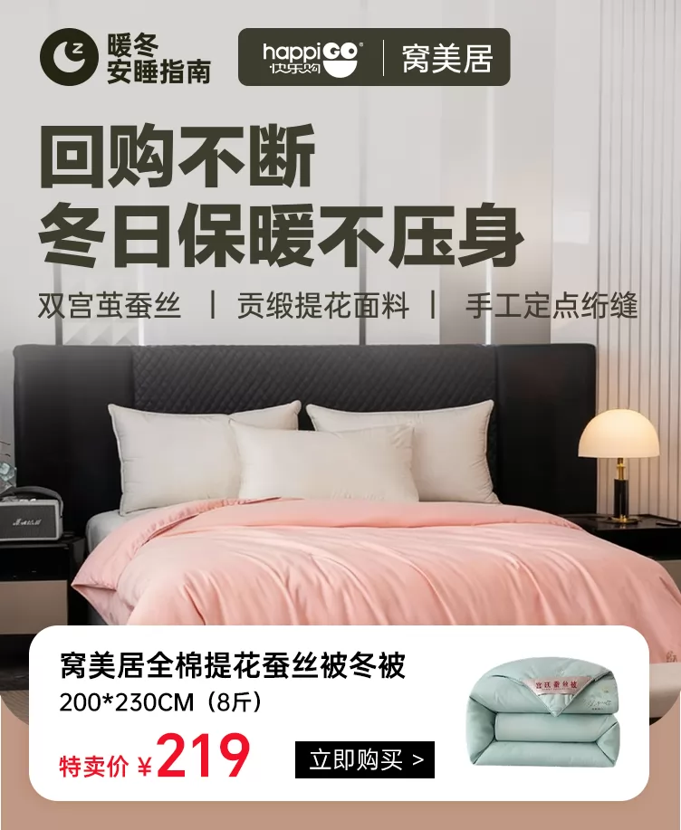 一被过冬不用愁!窝美居全棉提花蚕丝冬被,蚕丝内芯轻盈保暖,全棉外层亲肤透气。200*230cm大尺寸,秋冬卷着睡都不漏风