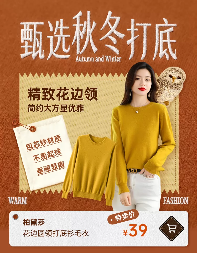 柏黛莎秋冬半高领宽松套头打底毛衣