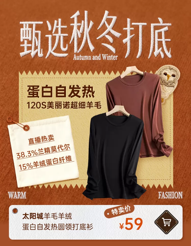 太阳城美雅碧超细羊毛莫代尔打底衫