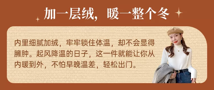 柏黛莎半高领女士针织打底衫保暖内搭加厚一体绒上衣1326