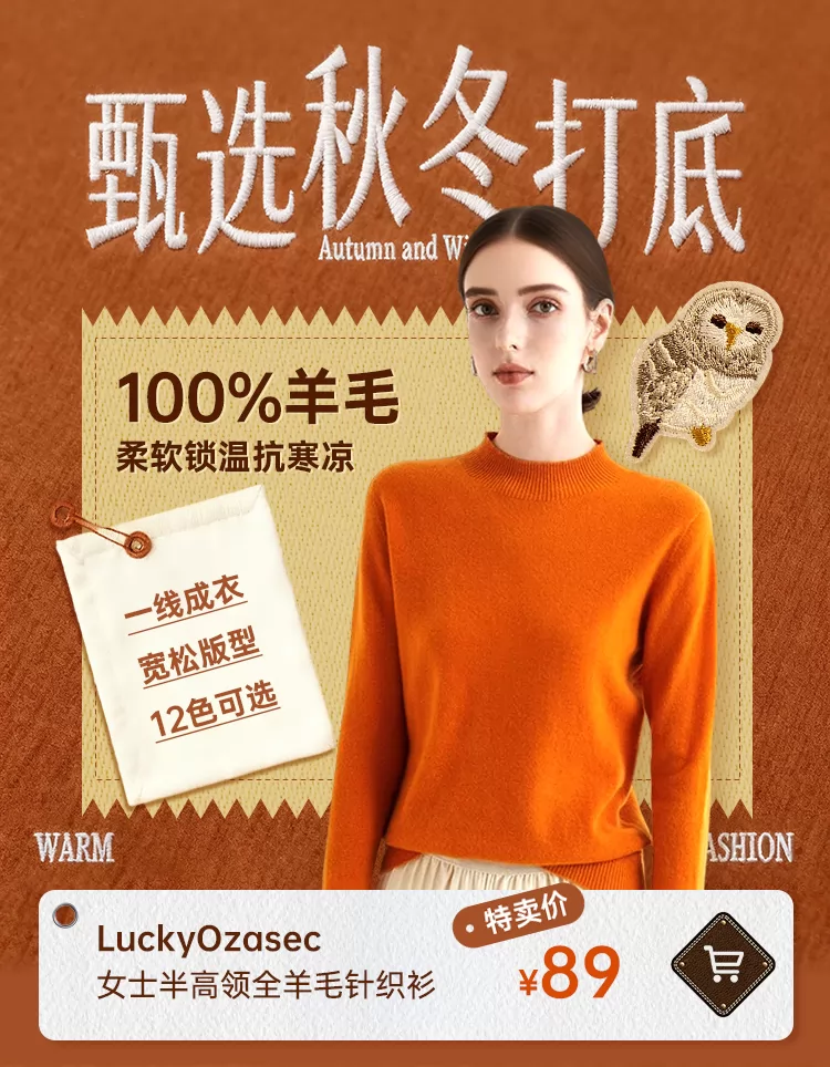 LuckyOzasec女士半高领全羊毛针织衫D001