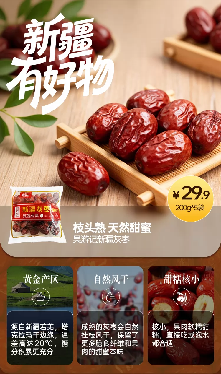 果游记新疆糯枣肉肉去皮去核免洗脱皮虎皮红枣软糥香甜140g/袋*3袋