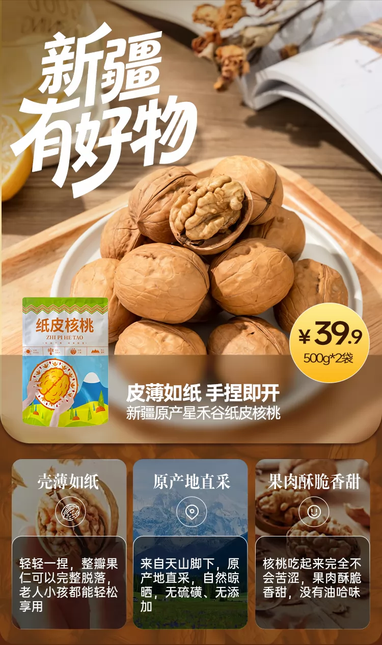 采用新疆天山雪水灌溉和自然晾晒工艺,保留了葡萄干的玫瑰花香调,颗粒饱满果肉厚实如软糖,有蜂蜜般的回甘,早餐拌酸奶、撒进燕麦碗,甚至做烘焙都不用额外加糖。