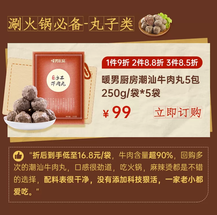 暖男厨房潮汕手工牛肉丸+牛筋丸套餐 250g/袋*16袋 (免费开放两袋试吃)